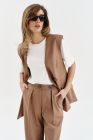 Комплект двойка жилет/брюки из костюмной ткани. Жилет на поливискозной подкладке, брюки частично на резинке, из новой весенней коллекции 2024. Полиэстер 65%, Вискоза 32%, Спандекс 3%
